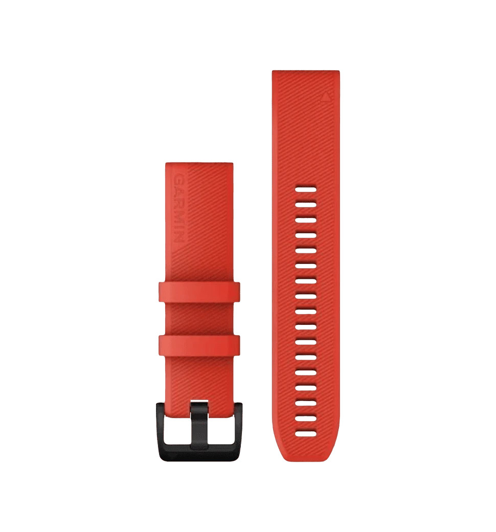 Ремінці для годинника Garmin QuickFit 22 силіконові, лазерно-червоні з чорною сталевою фурнітурою — це виразний аксесуар, що поєднує витривалість, комфорт і акцентний дизайн для активного ритму життя.