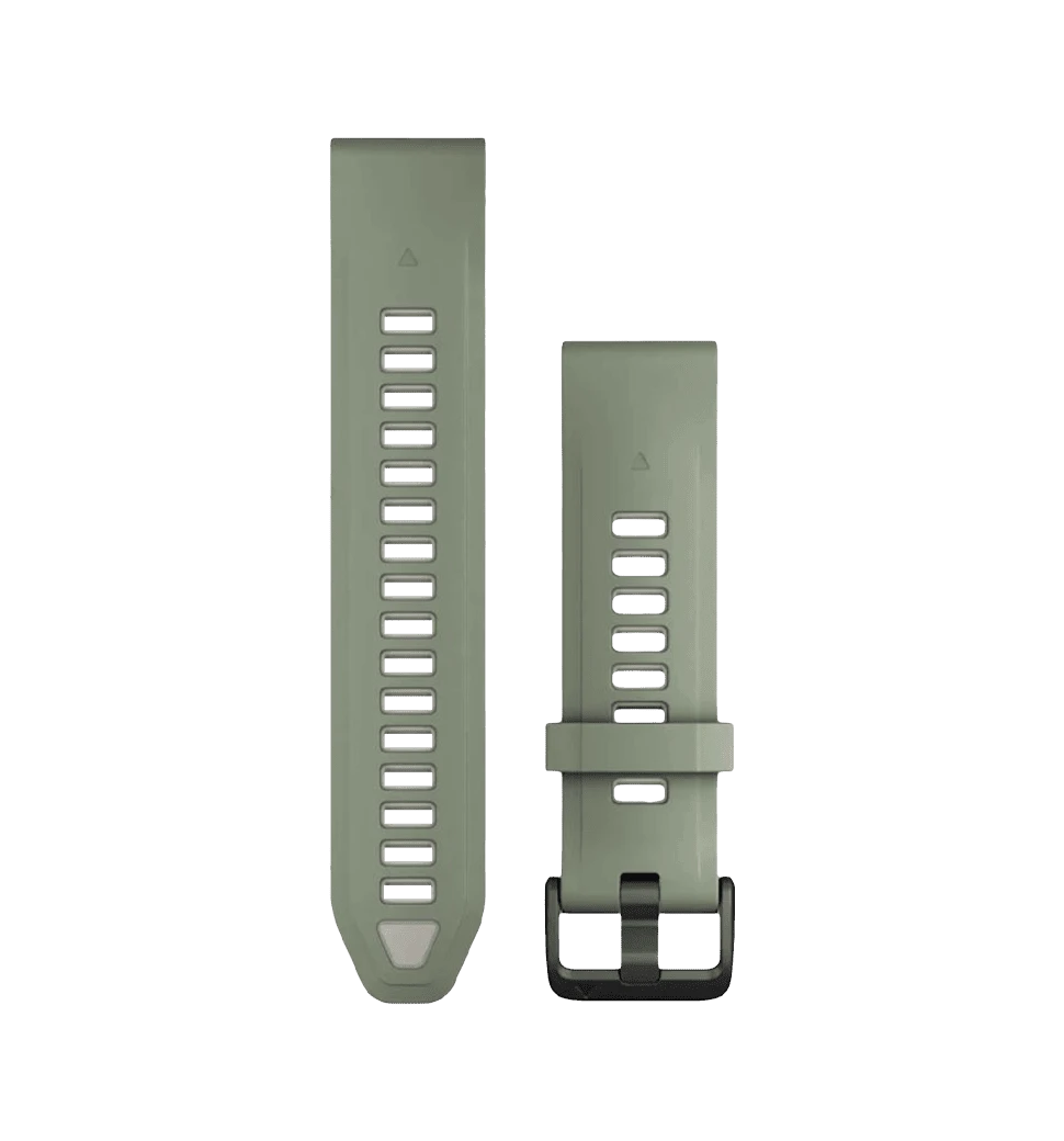 Силіконові ремінці Garmin QuickFit 20 у відтінках верба/туманно-сірий — це поєднання стриманої естетики, комфорту та практичності для щоденного використання і занять спортом.