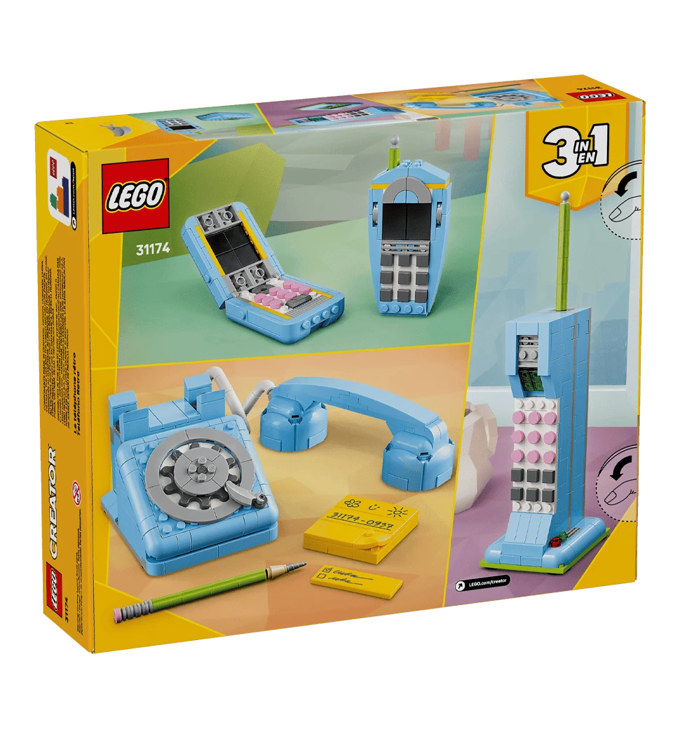 Конструктор LEGO Creator «Ретро телефон» — креативний набір 3 - в - 1 для складання стильного вінтажного телефону. Розвиває уяву, моторику та дарує дітям години захопливої творчої гри.