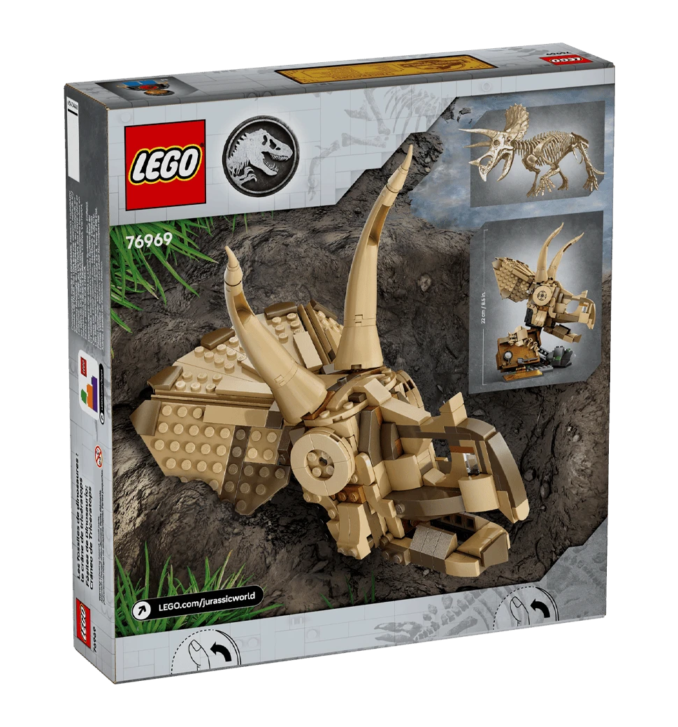 Конструктор LEGO Jurassic World «Скам'янілості динозаврів: череп трицератопса» — деталізований набір для фанатів доісторичного світу. Відтворює модель черепа з підставкою, розвиває креативність і стане ефектним експонатом колекції.