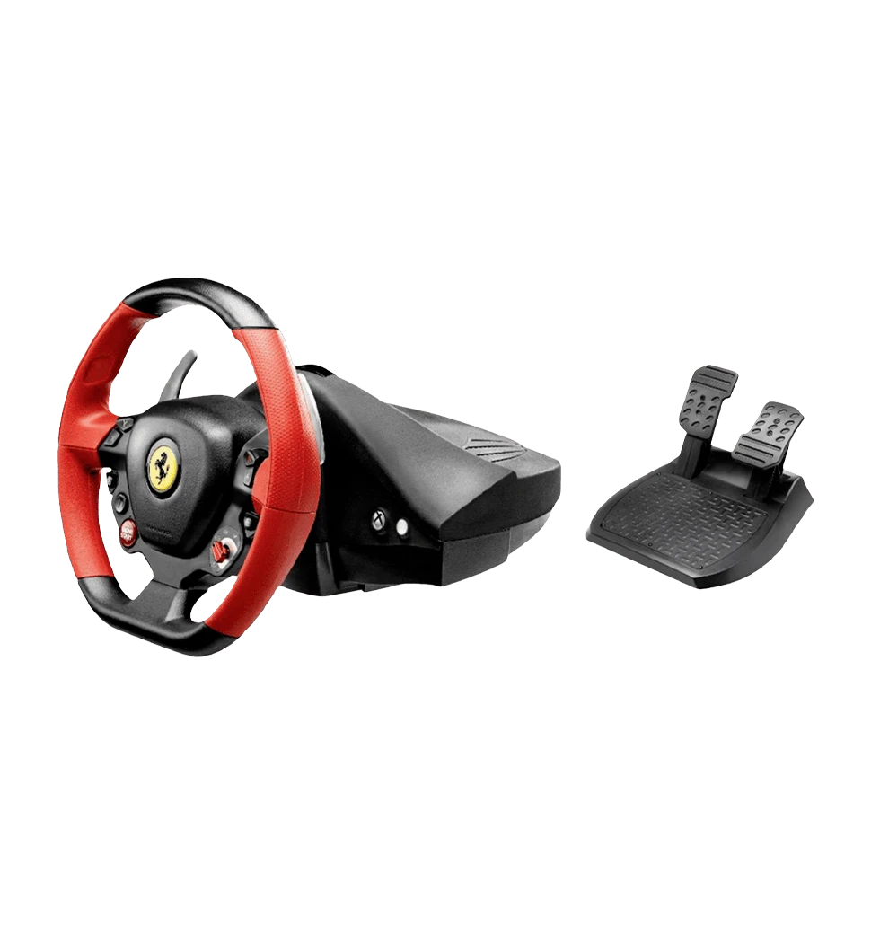 Thrustmaster Ferrari 458 Spider 4460105 — ігрове кермо з педалями, створене за дизайном легендарного Ferrari 458 Spider. Має кут повороту 240°, металеві під кермові перемикачі та 11 кнопок керування. Підключається через USB і забезпечує реалістичне керування в перегонових іграх на Xbox.
