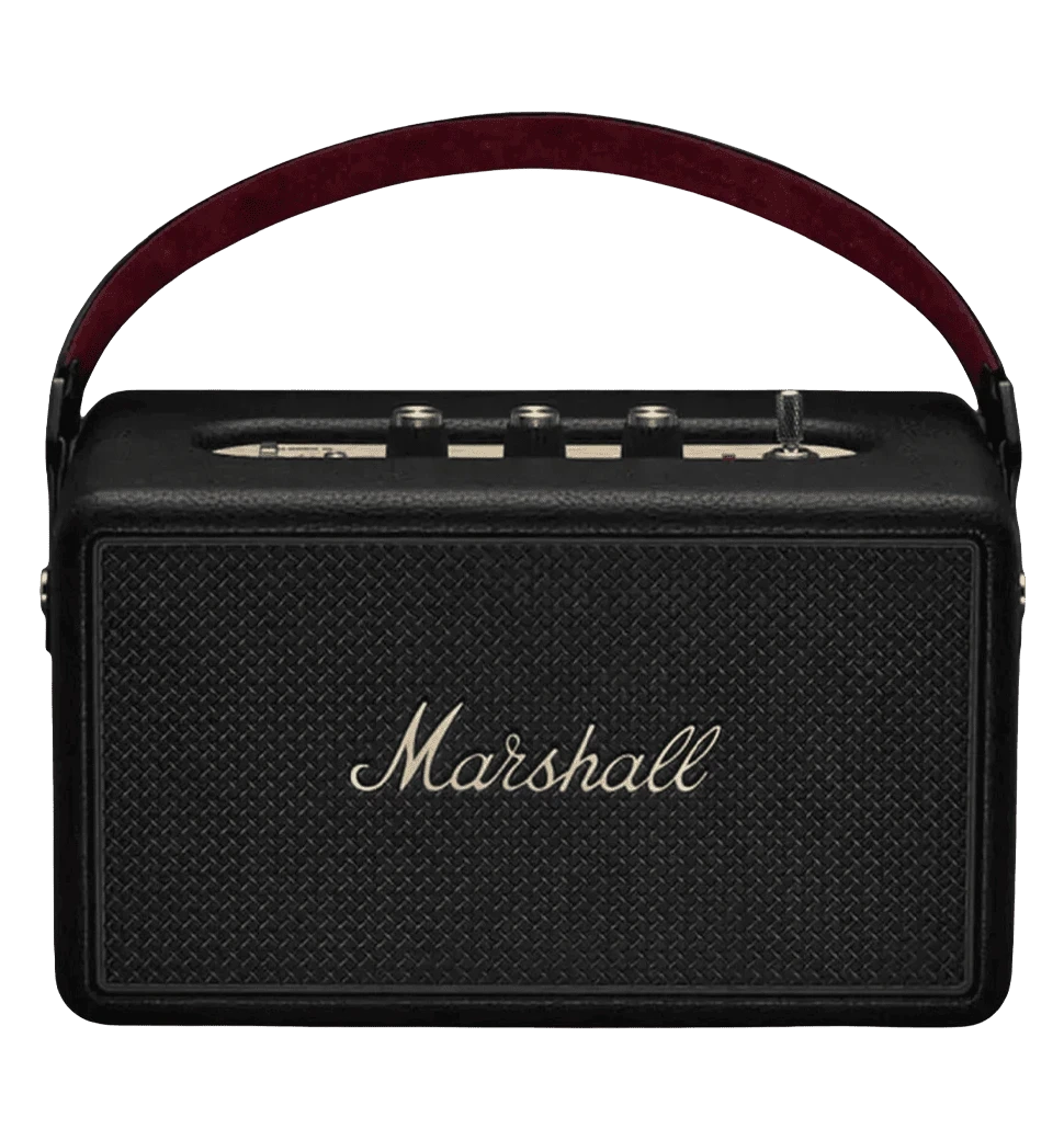 Для путешествий - Kilburn: Компактная беспроводная колонка Marshall с фирменным звучанием и автономностью до 20 часов - удобна в дороге и на пикниках.
