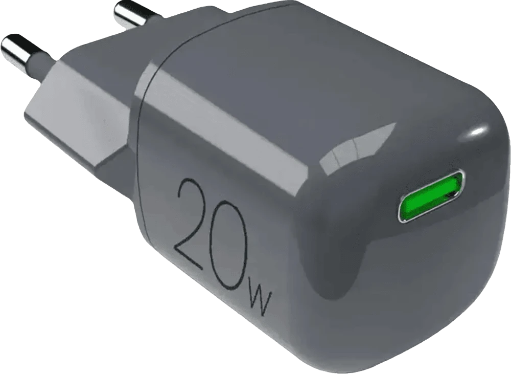 Зарядное устройство Puro Wall Charger GaN 1 USB-C 20 Вт, темно-серый — компактное сетевое зарядное устройство с поддержкой быстрой зарядки, созданное на основе GaN-технологии (нитрид галлия), что обеспечивает высокую эффективность, стабильную работу и сниженное тепловыделение при компактных размерах корпуса.