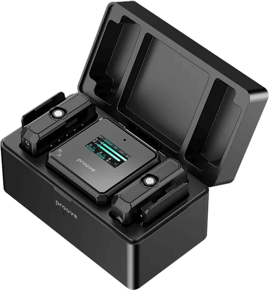 Беспроводная петличка Proove Forum Black. Чистый звук, стабильная связь до 20 м. Компактный дизайн, Plug&Play подключение. Идеальный выбор для влогов, интервью и стримов.