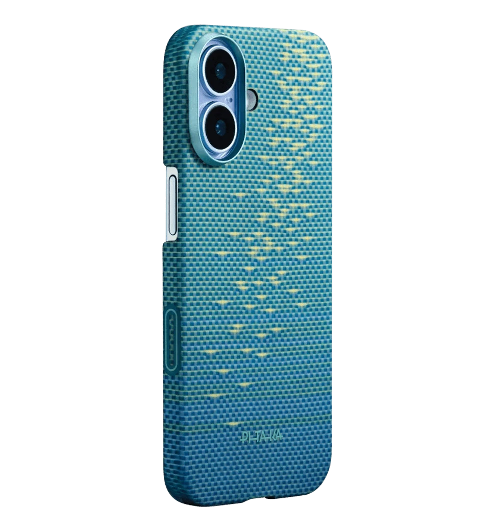 Коллекция Lucid Blue – это сочетание футуристического дизайна и естественных оттенков. Благодаря запатентованному методу плетения Fusion Weaving компания Pitaka интегрировала глубокие синие и голубые нити арамидного волокна в классическую структуру чехла. Результат – динамичный градиент, напоминающий морскую бездну или чистое небо, идеально дополняя палитру iPhone 17.